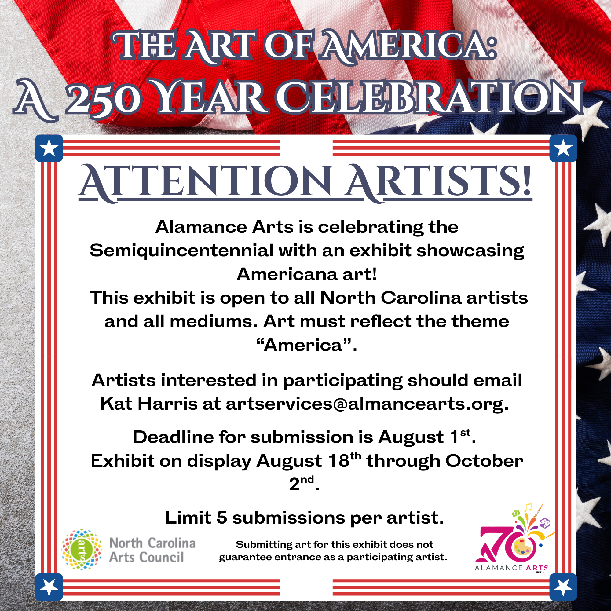 Be a part of the Alamance Arts Artist Core - a group of local and regional artists with the goal of connecting to the community through promotion of their art. Artist memberships become “effective” the date they become live on our website and are not limited to visual artists. An Artist Core Membership offers the benefit of being listed on a live, regularly updated document that will be housed on alamancearts.org. Alamance Arts frequently receives requests for recommendations of artists, and this directory will serve as our tool and one for the community to locate talent. In addition, you’ll have increased visibility through our website. (Which in 2024 had 49,000 unique visitors.) And, you can use your membership to help elevate your portfolio.