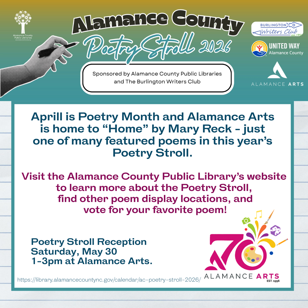 Public art is described as art in any medium that has been planned and executed with the intention of being implemented in the public domain, making it accessible to all. With the help of Alamance Arts, many locations within Alamance County have expanded their public art collections with exciting pieces from local artists. Alamance Arts is committed to shaping the cultural identity of Alamance County by making art a tangible presence in the lives of its citizens. In order to achieve this mission, Alamance Arts contributes to providing public art to the Burlington, Mebane, Graham and Glen Raven areas.